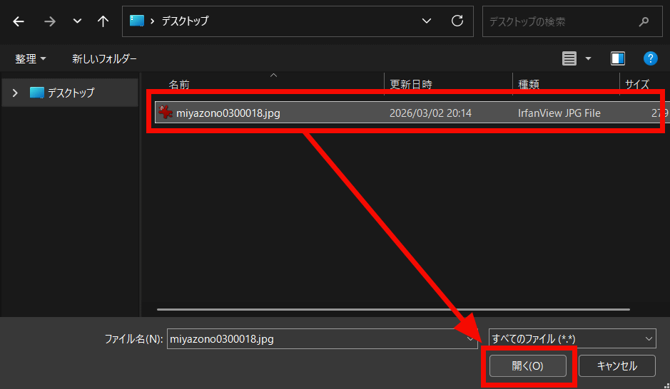 ローカルフォルダから共有するファイルを選択して「開く」をクリック。