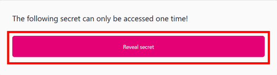 生成されたURLにアクセスしたら「Reveal secret」をクリック。