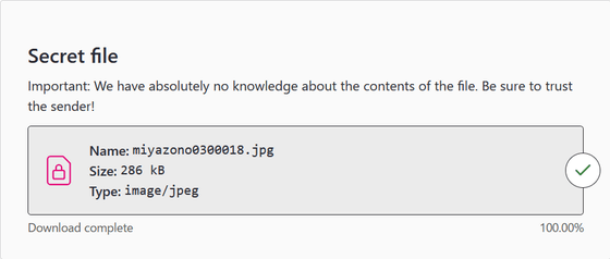 ファイルが自動的にダウンロードされました。ファイル共有のURLも文章と同様に2回目以降はアクセスしても開くことはできません。