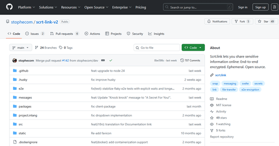 「scrt.link」はオープンソースプロジェクトで、GitHubで詳細を確認できます。