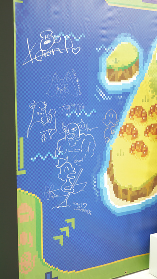 7分の1フィギュアを飾っている台にも、4人によるサインや落書きがありました。