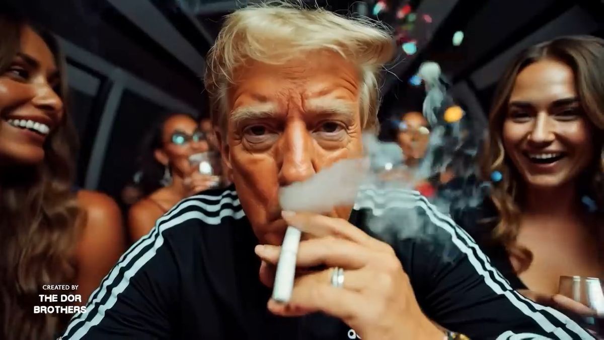 車中には美女に囲まれてタバコをふかすドナルド・トランプ大統領の姿が。