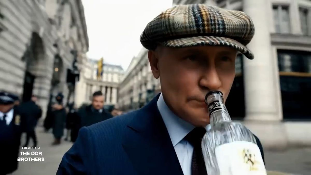 続いて現れたのはウォッカを飲みながら歩くロシアのウラジーミル・プーチン大統領。