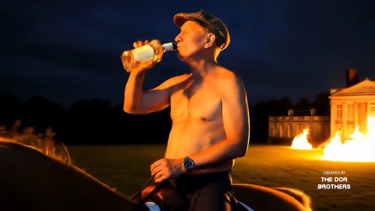 馬に乗りながらウォッカを飲むプーチン大統領。