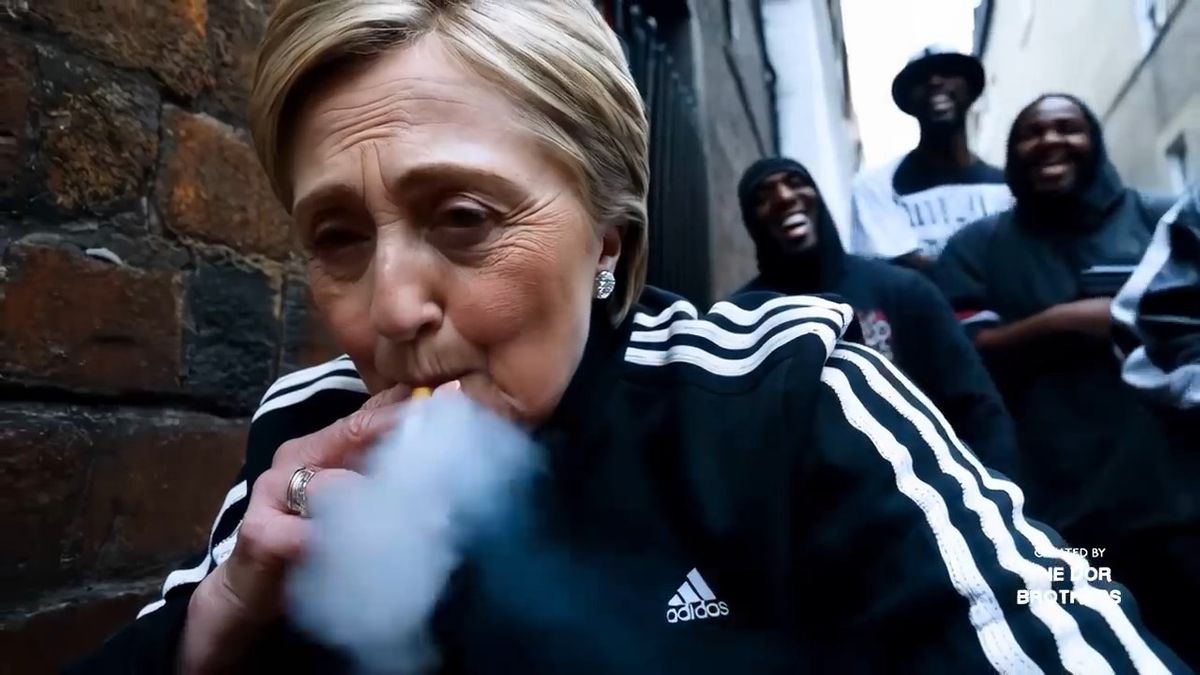 路地裏でタバコを吸うヒラリー・クリントン氏も登場。