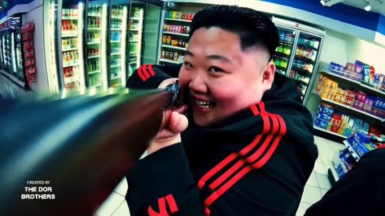 北朝鮮の金正恩総書記はコンビニで銃を構えています。