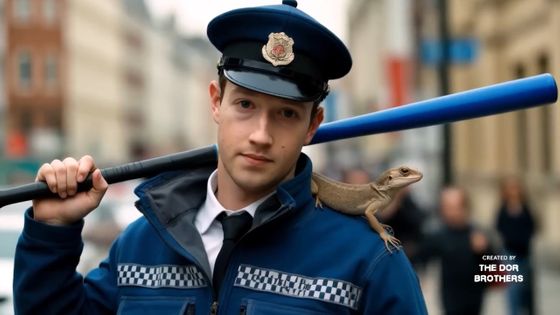 警察の制服に身を包んで金属バットを持つMetaのマーク・ザッカーバーグの姿も。