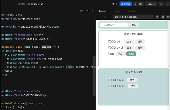 コードの編集結果をリアルタイムで確認しながらReactの各機能の効果を学習できるのもポイントです。
