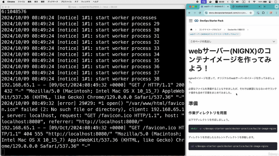 ドキュメントサイトに記されたコマンドを使いつつ、「コンテナの起動・停止・削除」や「コンテナイメージの作成」といった操作の手順を学べます。解説動画だけでなくドキュメントサイトにも無期限にアクセス可能なので、学習した内容を簡単に再確認できます。