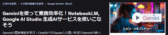 Geminiを使って業務効率化!NotebookLM, Google AI Studio 生成AIサービスを使いこなそう | Udemy