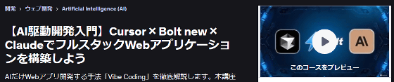 【AI駆動開発入門】Cursor × Bolt new × ClaudeでフルスタックWebアプリケーションを構築しよう | Udemy