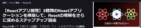 【Reactアプリ開発】3種類のReactアプリケーションを構築して、Reactの理解をさらに深めるステップアップ講座 | Udemy
