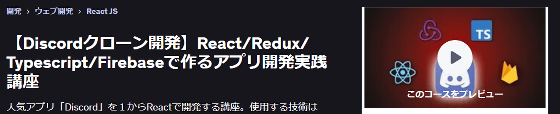 【Discordクローン開発】React/Redux/Typescript/Firebaseで作るアプリ開発実践講座 | Udemy