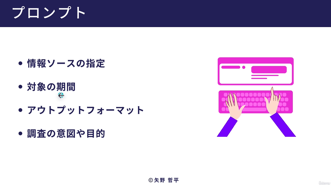 チャットAIは入力するプロンプトによって応答内容が大きく変化し、AIにとって理解しやすい指示を入力することで高品質な応答を出力してくれます。この講座ではプロンプトを作るテクニックも教えてくれるため、業務効率化に役立つ高度なプロンプトを自分で作れるようになります。