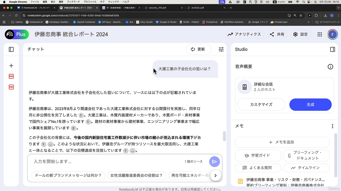 NotebookLM入門:情報整理とアイデア発想をAIで加速する | Udemy