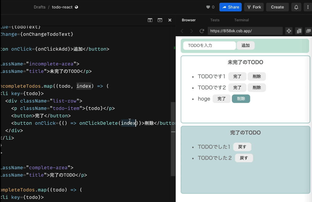 コードの編集結果をリアルタイムで確認しながらReactの各機能の効果を学習できるのもポイントです。