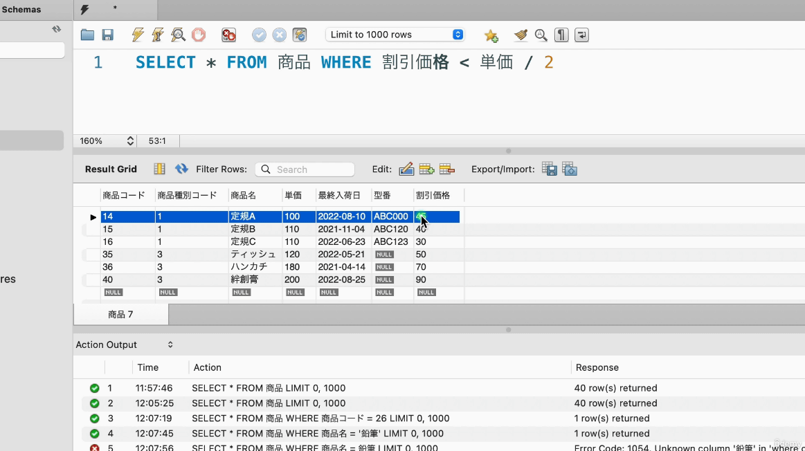 講座内では「実際にSQLコードを書いてデータベースを操作する様子」を確認しつつ自分でもコードを書いて試すことができるため、文字情報だけで学習するよりも効率的に知識を身に付けられます。