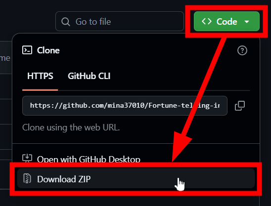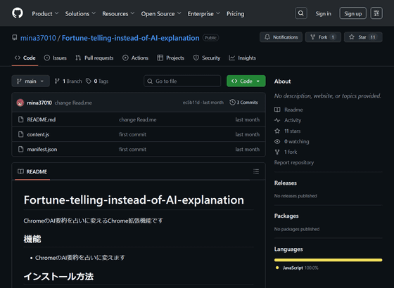 まずは以下の「Fortune-telling-instead-of-AI-explanation」のGitHubリポジトリにアクセス。