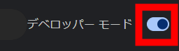 Chromeで「chrome://extensions/」を開き、画面右上にあるデベロッパーモードを有効にします。