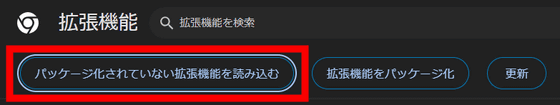 デベロッパーモードを有効にすると画面左上に「パッケージ化されていない拡張機能を読み込む」というボタンが出現するのでこれをクリック。