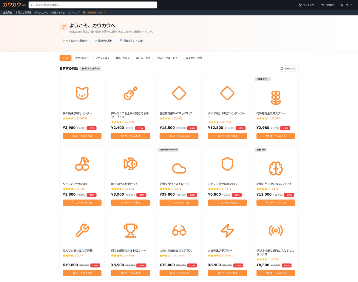 架空商品を架空注文して架空決済され架空配達に回されて買い物気分だけ味わえる通販サイト「カウカウ」