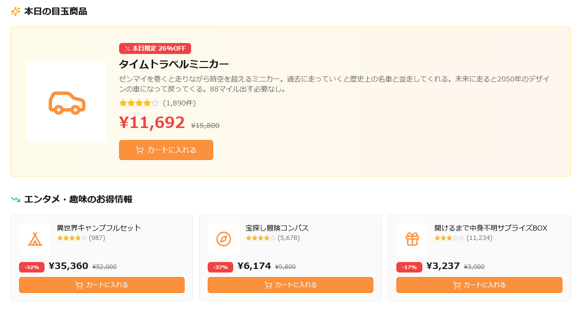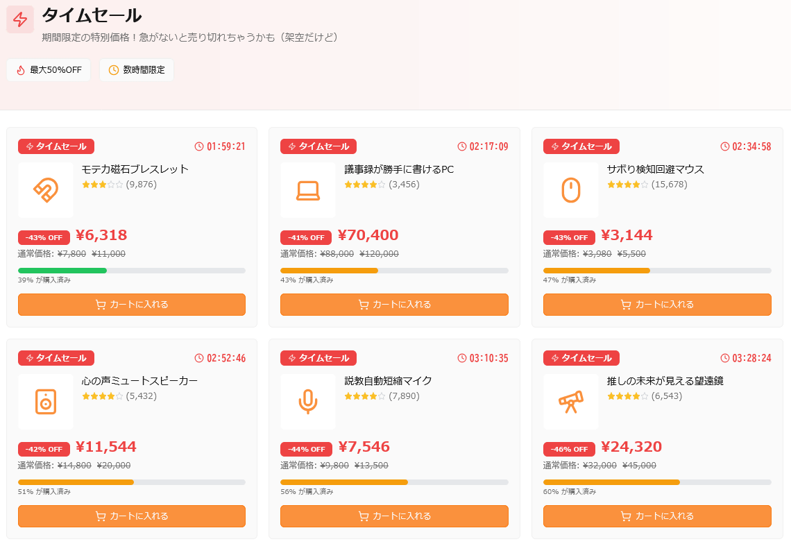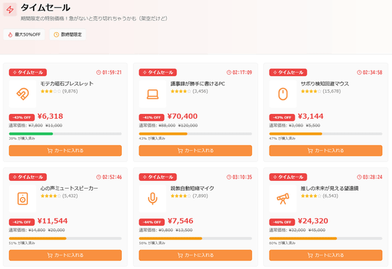 さらに、タイムセールではいろいろな商品が40%以上の割引になっていました。
