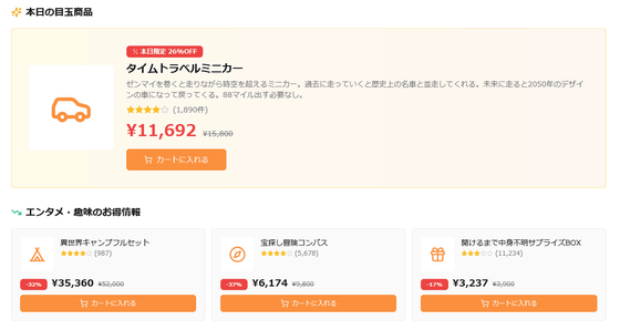 「本日のお得情報」を見てみると、「タイムトラベルミニカー」がお得だとのこと。