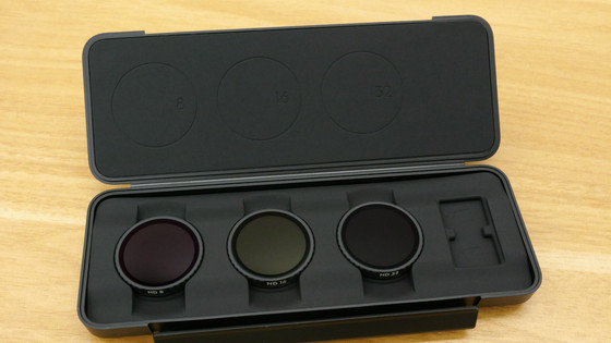 フィルターは3種類。番号が大きくなるほどフィルターの色が濃くなり、より多くの光量を減らすことができます。