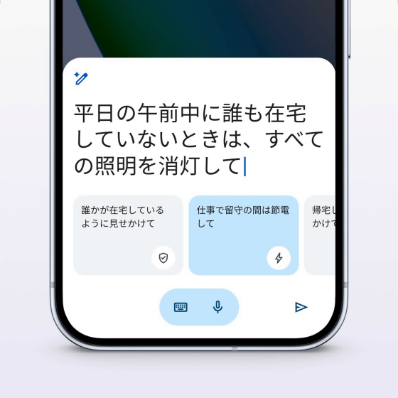また、Gemini for Homeを各種デバイスと連携させることで、「平日の午前中に誰も在宅していないときは、すべての照明を消灯して」といったように自然言語で指示するだけで自動システムを構築できるようになります。