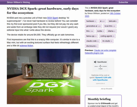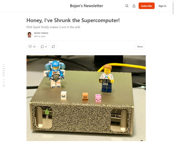 2025年10月15日、NVIDIAが「世界最小のスーパーコンピューター」をうたう「DGX Spark」を発売しました。このDGX Sparkを実際に使用した海外メディアが早速レビューを公開しているので、実際の使用感などに関する情報をまとめてみました。