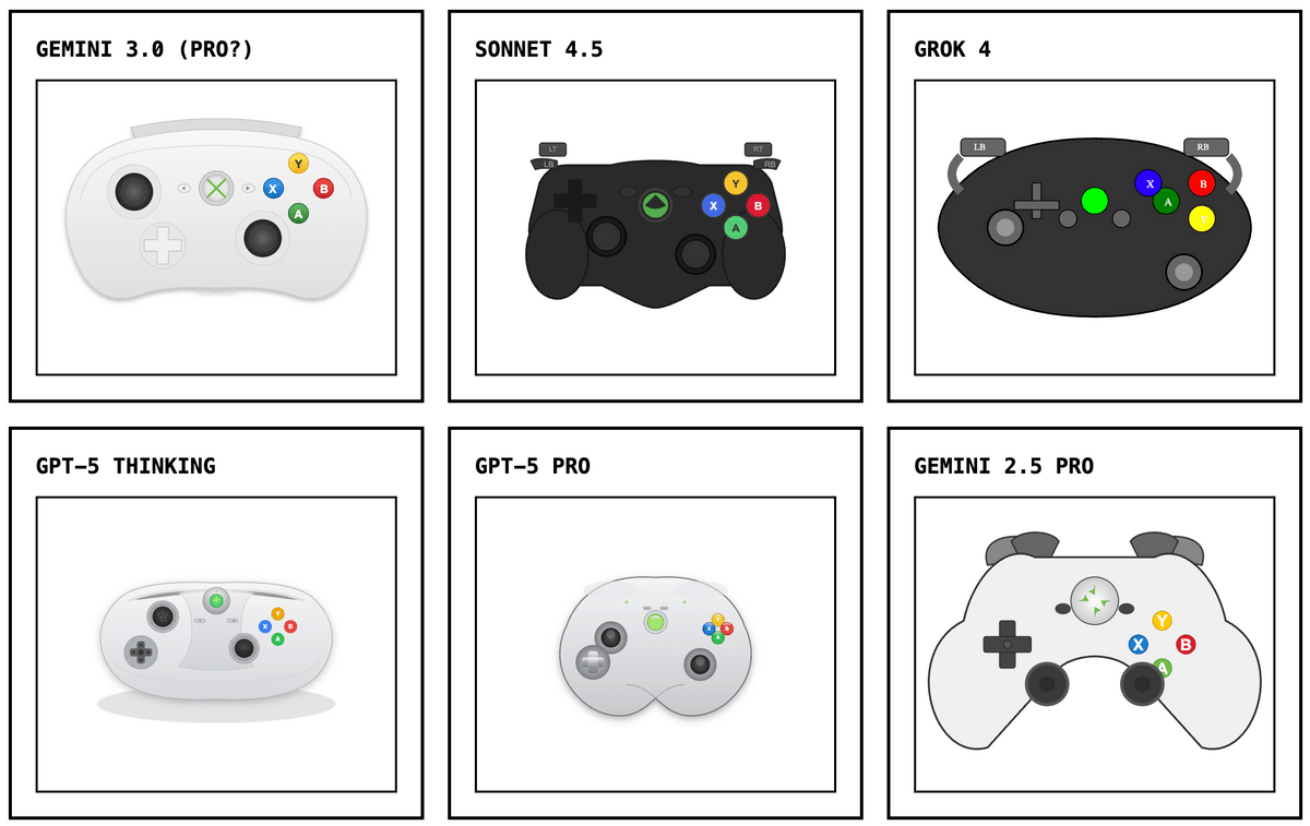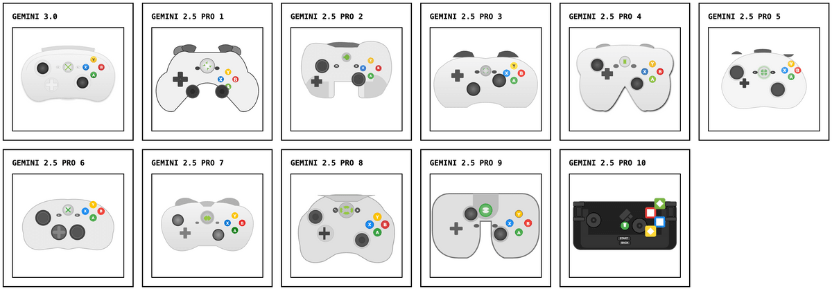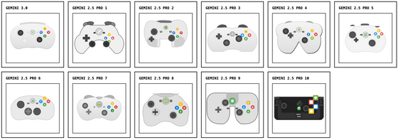 そして、ラマーズ氏は「Xbox 360」のコントローラーのSVGファイルを各モデルに出力させて比較しました。ラマーズ氏が使用したモデルはGemini 3.0なのかGemini 3.0 Proなのか判別できなかったものの、他の主流のモデルと比べて精度は高かったそうです。