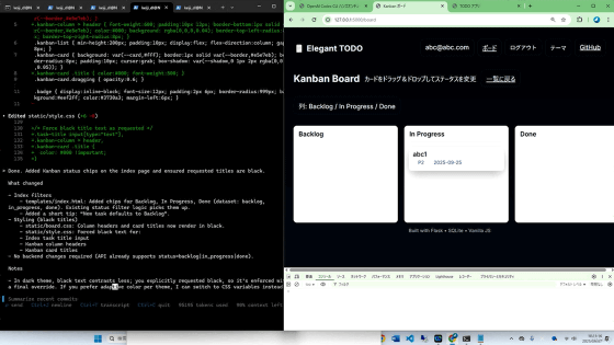 単純なアプリの作り方だけでなく、「AGENTS.md」を用いてCodexに追加の指示を与えて「ログイン機能の追加」「複数ユーザーに対応」「カンバン管理機能の追加」といった実用的な機能を追加する方法も解説してくれます。