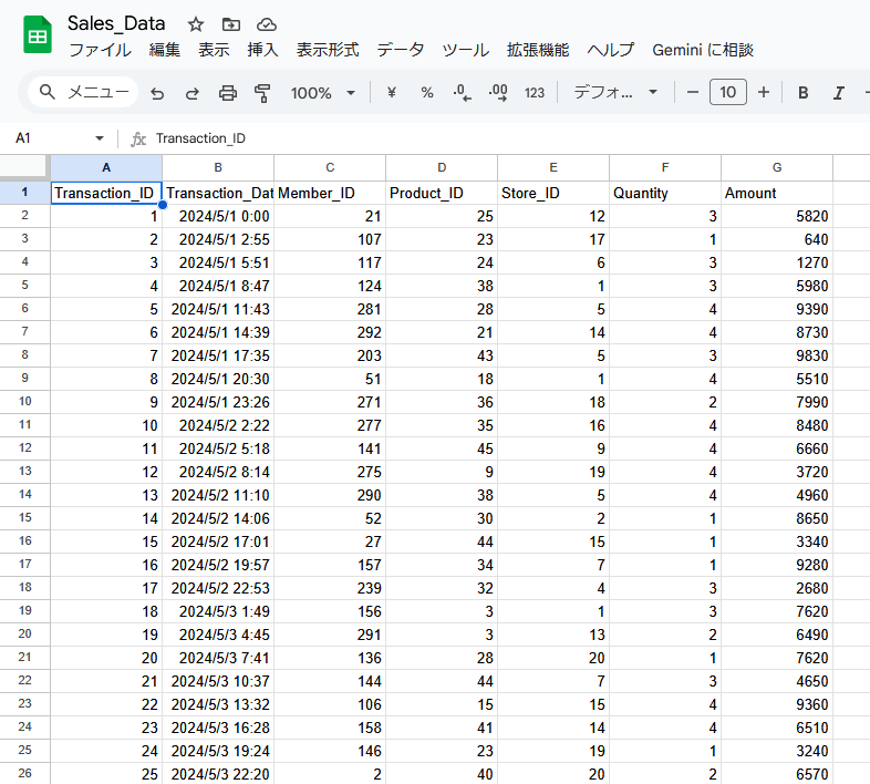 Pythonの基礎を学んだら、サンプルデータを用いてデータサイエンスの課題に挑むことになります。サンプルデータは「売上データ」や「人員データ」といった実践的なものを使います。