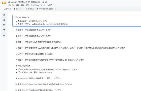 【実践】Python✕データサイエンス加工・集計・可視化処理100本ノック!実務でよく使う100個の問題にチャレンジ! | Udemy