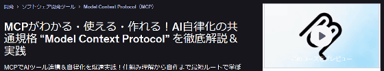 ◆2:AIと各種ツールを連携させる「MCP」の使い方やMCPサーバーの作り方を学べる講座