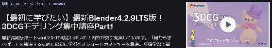 UdemyにはBlenderを用いた3Dモデリングの講座が複数存在しています。各講座は購入前に内容の一部を確認可能なので、自分の作りたいモデルに合った講座を選べます。