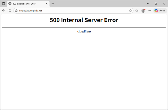pixivにアクセスしてみた結果が以下。500エラーが出ており、サーバー側の問題であることが分かります。