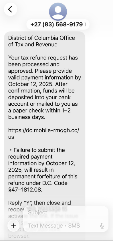 また、ある事例では、アメリカの州税務当局になりすまし、受信者に未請求の税金還付があると伝える詐欺も確認されています。ここでも、ユーザーの決済カード情報とワンタイムコードをだまし取ることが目標となっています。