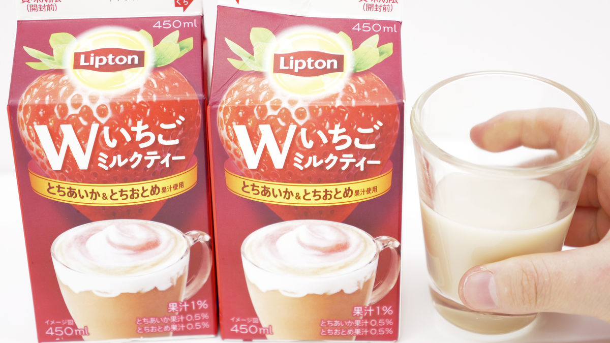 森永乳業の紅茶ブランド・リプトンから、味わいの異なる「とちあいか」と「とちおとめ」の2種類のいちご果汁を使用したミルクティー「リプトン Wいちごミルクティー」が2025年12月9日から期間限定で登場しました。いちごの甘みと酸味がミルクティーにマッチするよう絶妙なバランスに仕上げたドリンクとのことなので、実際に飲んでみました。
