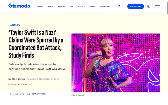 「テイラー・スウィフトはナチス」という主張は組織的なボット攻撃によって拡散されたと研究で判明
