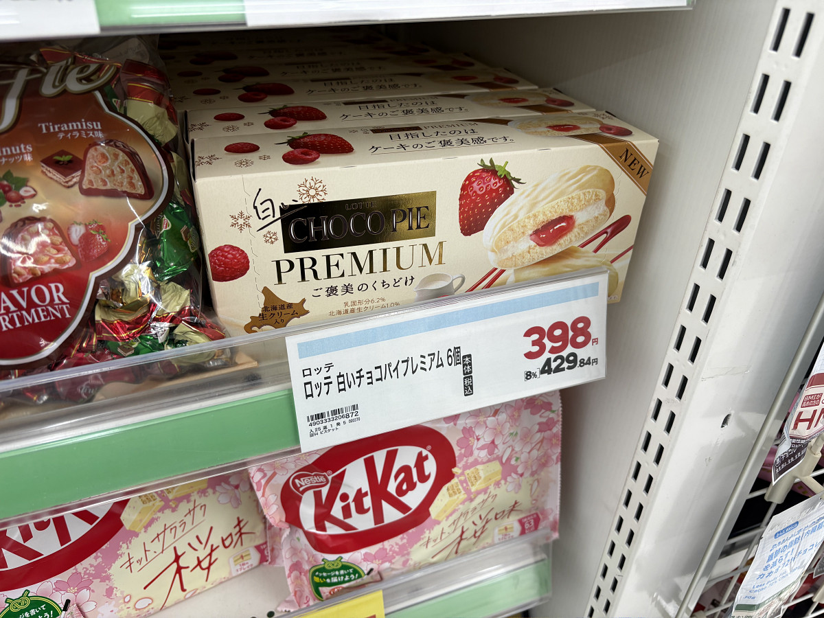 ドラッグストアのお菓子コーナーで白いチョコパイプレミアムを発見。