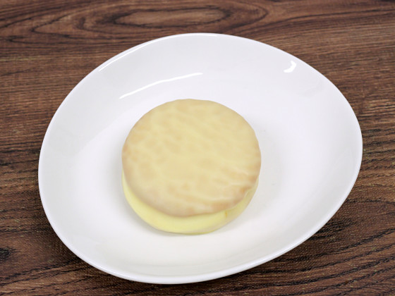 ミルククリームをケーキ生地で挟む構成。側面もホワイトチョコレートでコーティングされています。