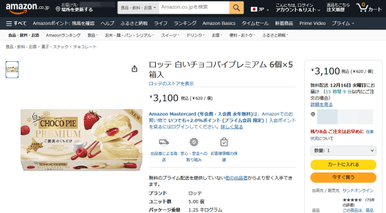白いチョコパイプレミアムは2025年11月11日から全国で販売されています。想定小売価格は税込518円で、Amazon.co.jpでは5箱セットが税込3100円(1箱あたり620円)で入手可能です。
