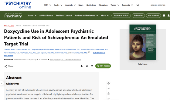 Doxycycline Use in Adolescent Psychiatric Patients and Risk of Schizophrenia: An Emulated Target Trial | American Journal of Psychiatry