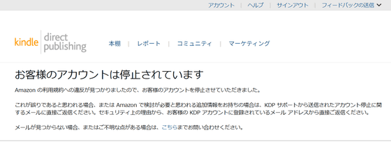 しかし、2025年11月末頃にKDPにサインインしたところ、「お客様のアカウントは停止されています」と表示され、本の出版や確認、レポートの確認などができなくなっていました。