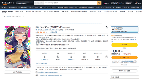 一方で、「姫とゲーマー」は通常どおり商品ページが表示され、購入もできるようになっていました。それぞれの作品はリリース時期を除いて、同じアカウントから同じように出版されたもののため、商品ページの差は謎です。