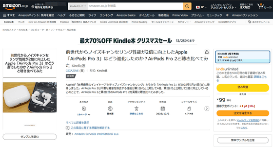 Amazon.co.jp: 前世代からノイズキャンセリング性能が2倍に向上したApple「AirPods Pro 3」はどう進化したのか?AirPods Pro 2と聴き比べてみた 電子書籍: GIGAZINE: Kindleストア