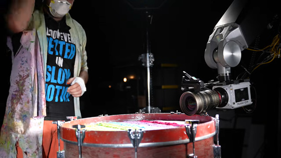 バスドラムをスローモーションカメラで撮影するムービーは、The Slow Mo Guysが2016年にも投稿しています。以下のムービーでは、バスドラムの上に6色の塗料を載せてからたたくことで、衝撃波がどのように広がっていくのかをスローモーションカメラで撮影しています。