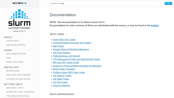 Slurmのドキュメントは以下のリンク先で公開されています。