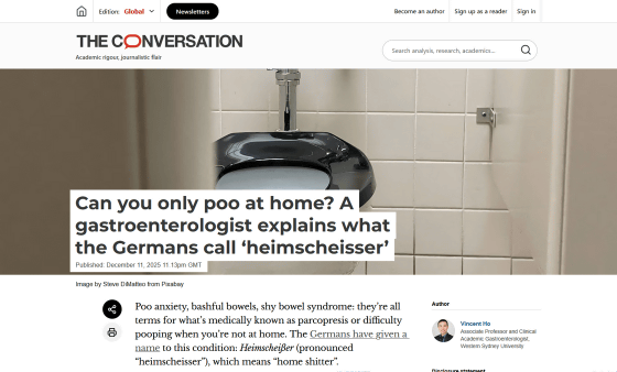 自宅以外で排便することが極度に難しい状態は「パルコプレシス」と呼ばれ、患者は学校や職場、あるいは公共施設などで排便しようと考えるだけで苦痛や不安を感じるほか、旅行中に一切排便できなくなってしまうというケースもあります。そんなパルコプレシスの人々に生じる問題や解決策について、西シドニー大学の臨床消化器内科医であるヴィンセント・ホー准教授が解説しました。